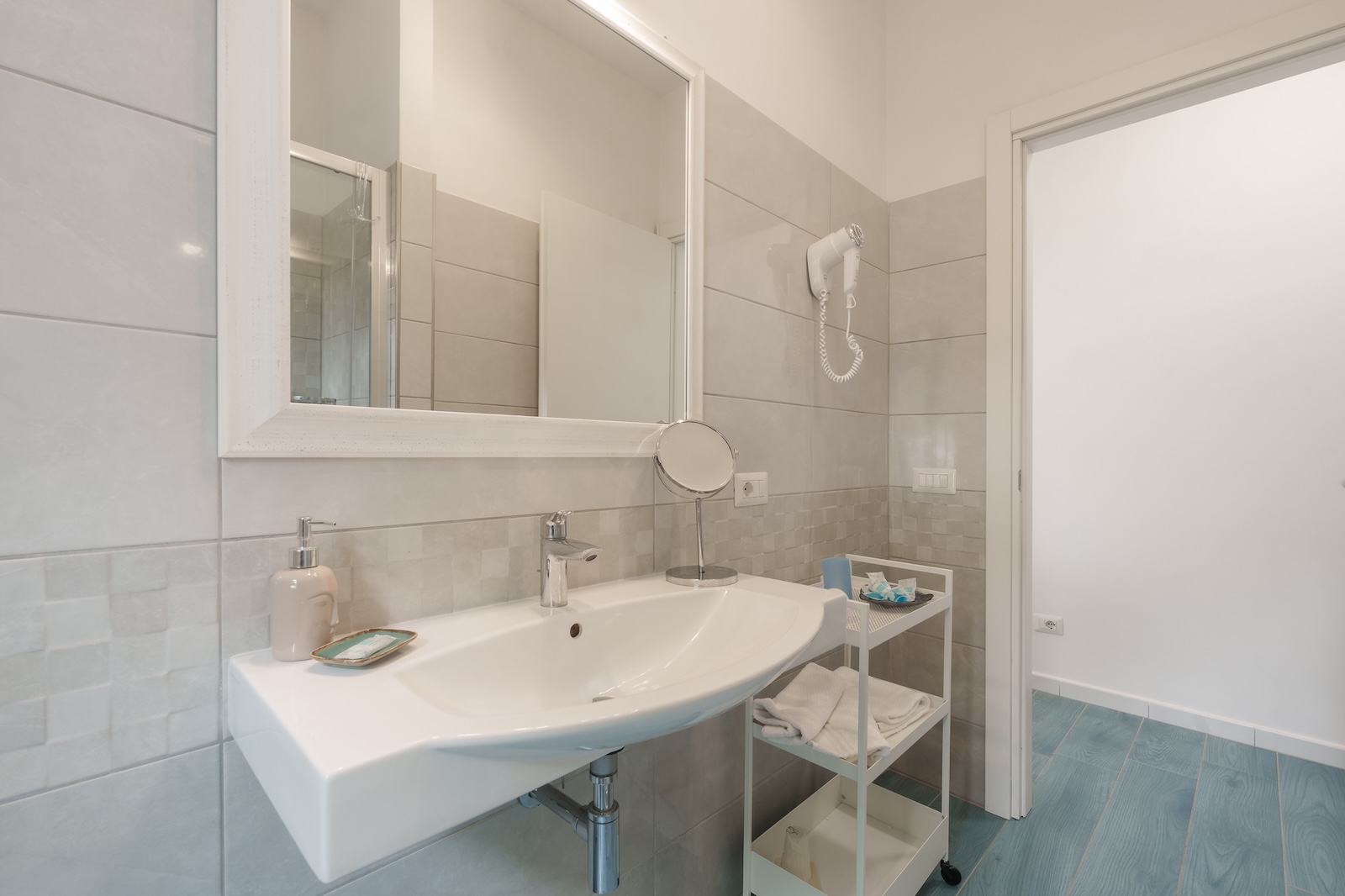Bagno con doccia e asciugacapelli